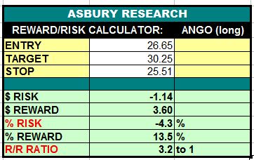 AngioDynamics, Inc (ANGO) is amid favorable conditions to resume its November 2020 major uptrend from minor Tactical support near $26.04, which is currently being tested. A sustained rise above this area would target an additional 14% rise to $30.25 per share. This is an Asbury Momentum trade idea.