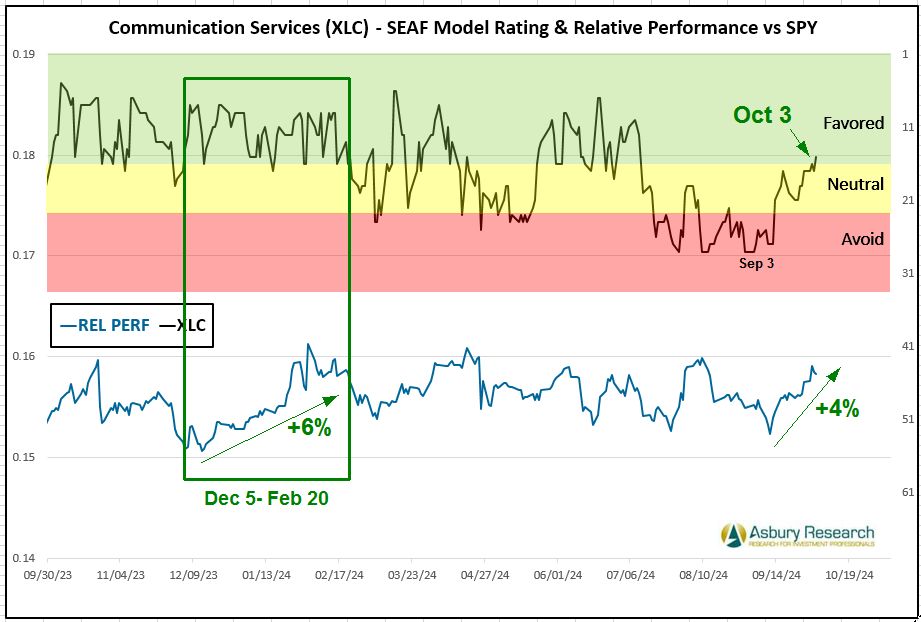 - Effective Monday 10/7, there is a new buy/overweight signal in the Communication Services Select Sector SPDR ETF Fund (XLC).