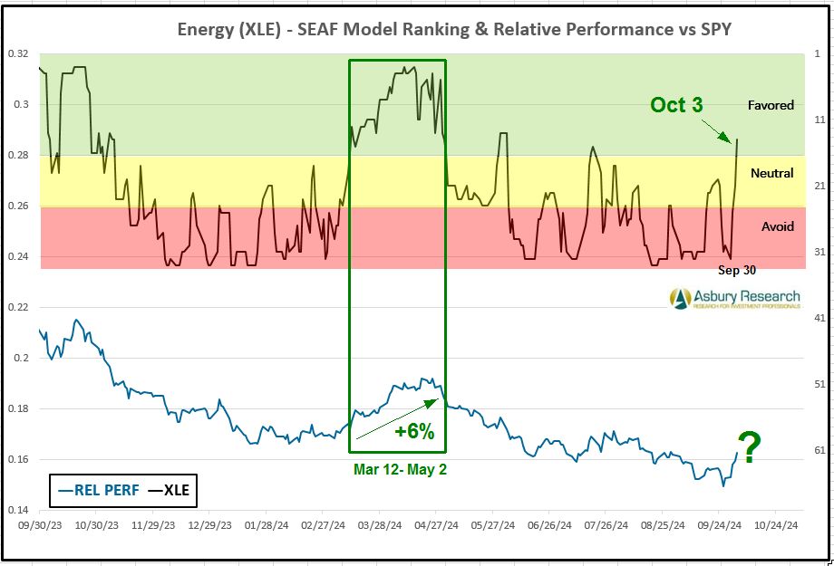 - Effective Monday 10/7, there is a new buy/overweight signal in the Energy Select Sector SPDR Fund (XLE).