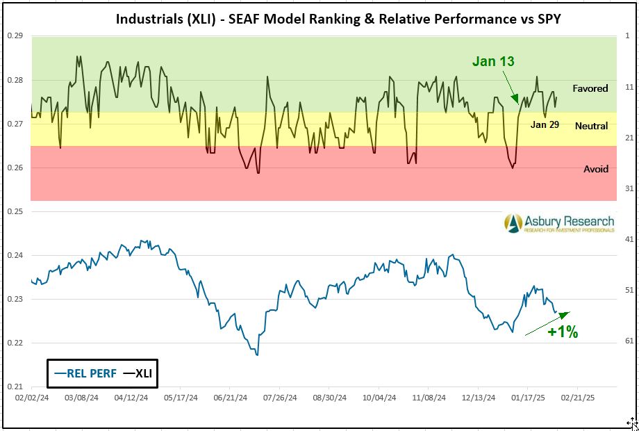 - Effective Monday 2/10, there is a new buy/overweight signal in the Industrial Select Sector SPDR Fund (XLI).