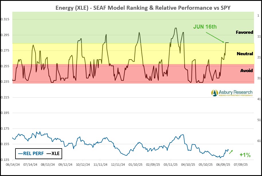 - Effective Monday 6/23, there is a new buy/overweight signal in the Energy Select Sector SPDR Fund (XLE).