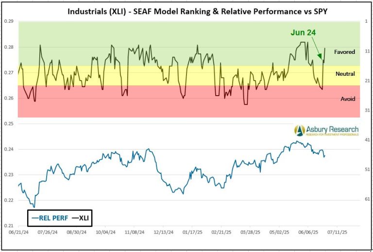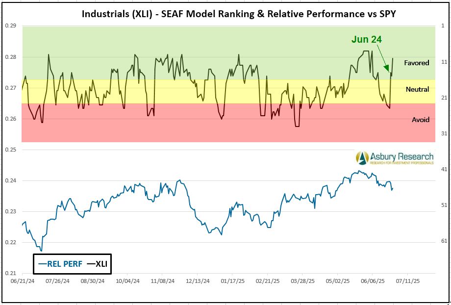 - Effective Monday 6/30, there is a new buy/overweight signal in the Industrial Select Sector SPDR Fund (XLI).