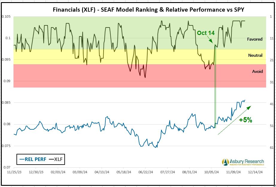 Financials (XLF), Consumer Discretionary (XLY) Remain Top SEAF Model Scores