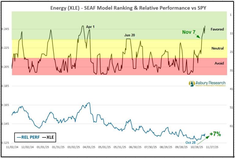 - Effective Monday 11/17, there is a new buy/overweight signal in the Energy Select Sector SPDR Fund (XLE).