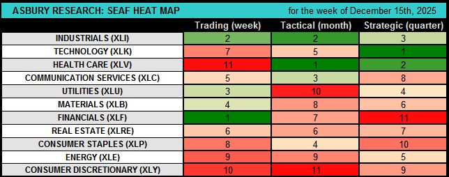 This weekly video by Jack Kosar goes into more detail on the latest SEAF Model data via our SEAF Rainbow Charts and a heat map that provides more color and detail on where sector-related assets are going and where they are coming from across the 11 Sector SPDR ETFs, which together comprise the S&P 500. Our Rainbow Charts highlight SEAF’s previous 12 months of Favored, Neutral, and Avoid rankings.