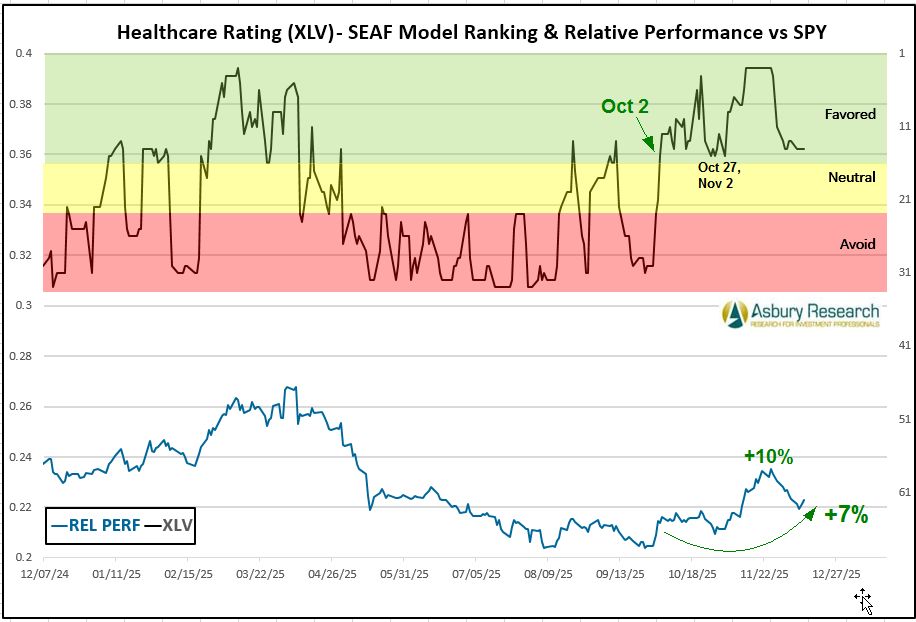 - Effective Monday 12/15, there is a new buy/overweight signal in the Health Care Select Sector SPDR Fund (XLV).