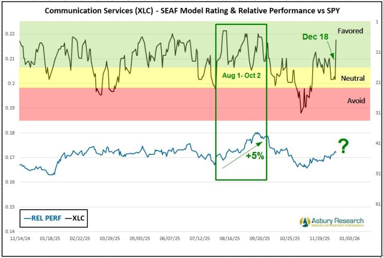 - Effective Monday 12/22, there is a new buy/overweight signal in the State Street Communication Services Select Sector SPDR ETF (XLC).