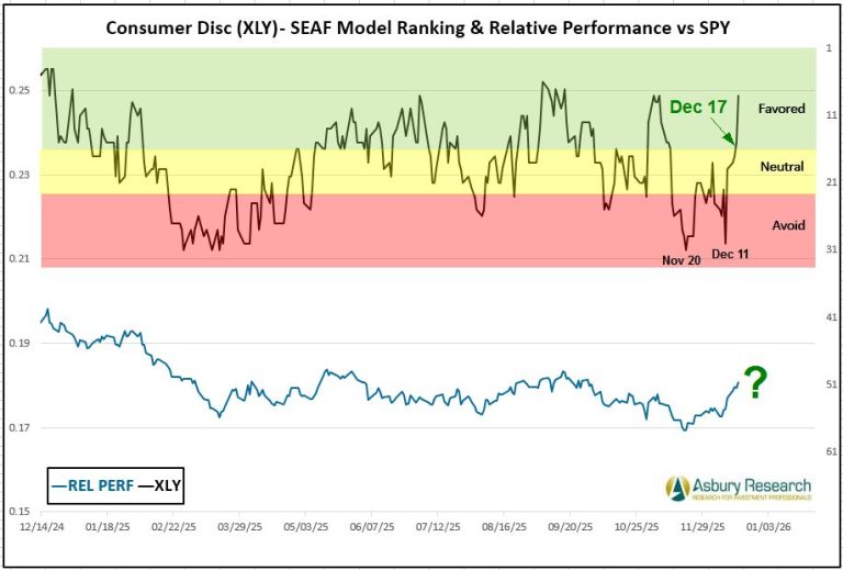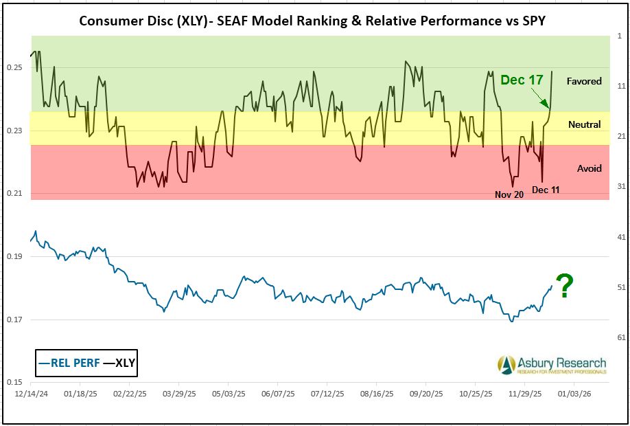 - Effective Monday 12/22, there is a new buy/overweight signal in the State Street Consumer Discretionary Select Sector SPDR ETF (XLY).