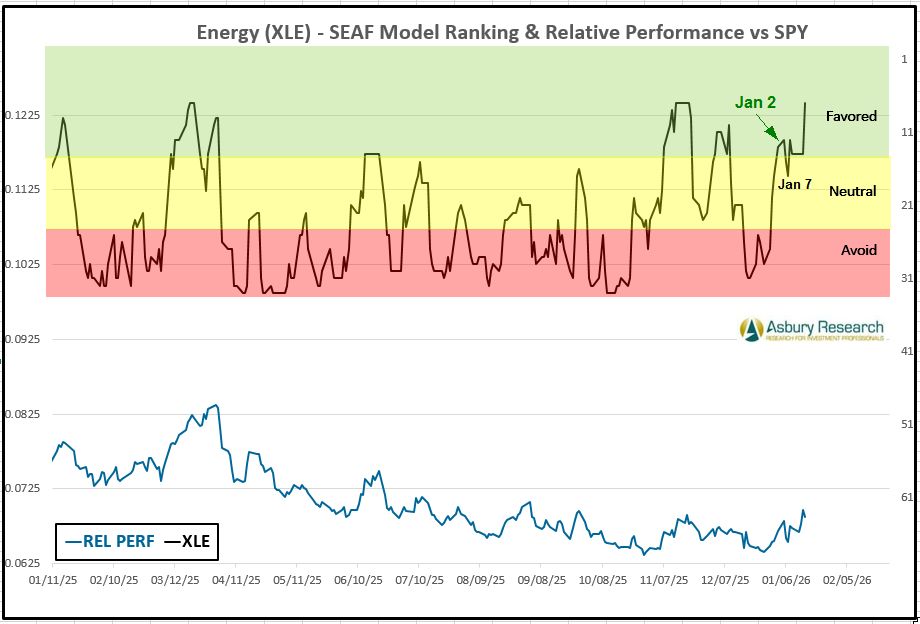 - Effective Tuesday 1/20, there is a new buy/overweight signal in the State Street Energy Select Sector SPDR ETF (XLE).