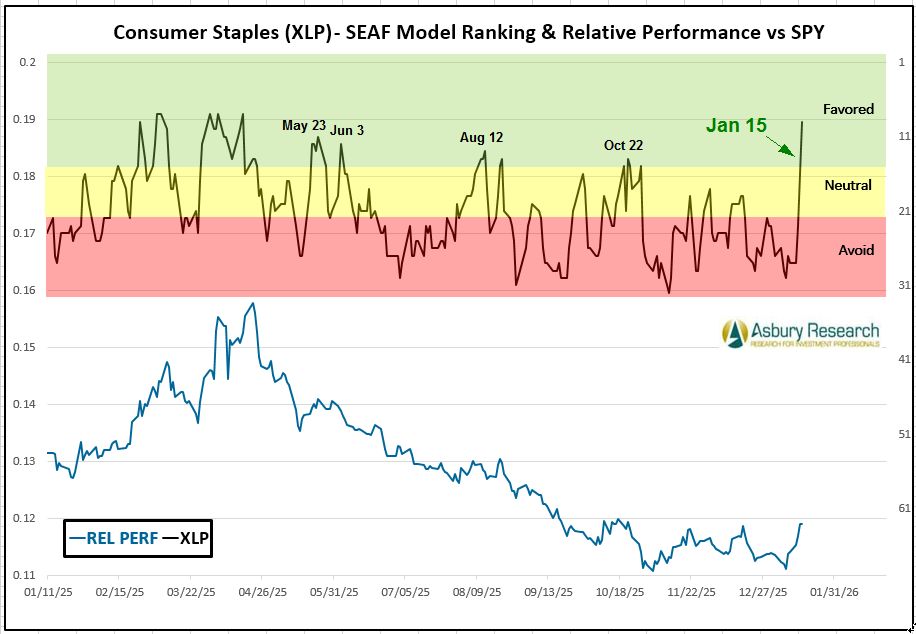 - Effective Tuesday 1/20, there is a new buy/overweight signal in the State Street Consumer Staples Select Sector SPDR ETF (XLP).