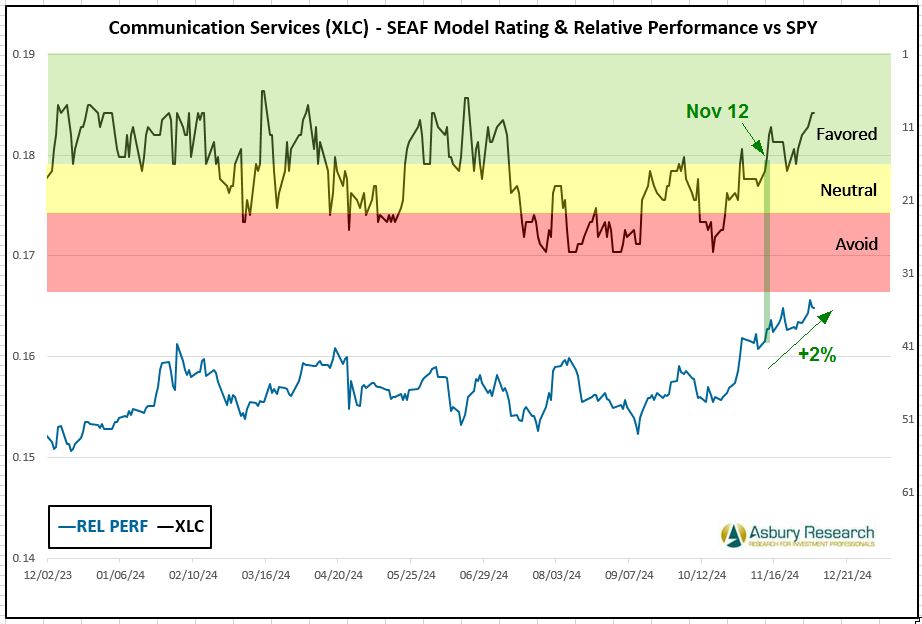 - Effective Monday 12/9, there is a new buy/overweight signal in the Communication Services Select Sector SPDR ETF Fund (XLC).