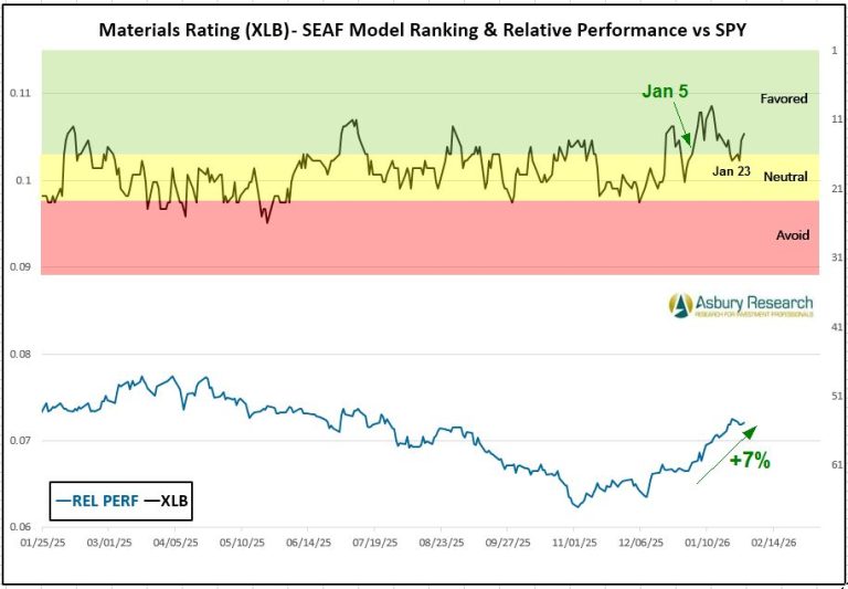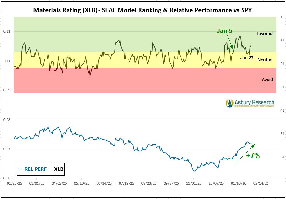 - Effective Monday 2/2, there is a new buy/overweight signal in the State Street Materials Select Sector SPDR ETF (XLB).
