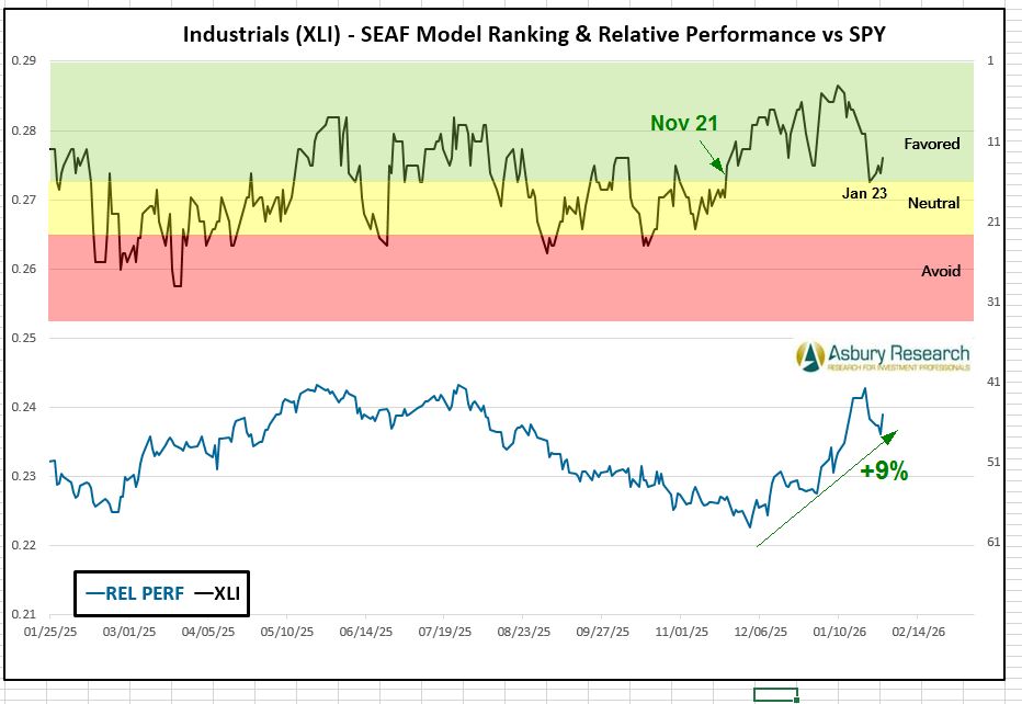 - Effective Monday 2/2, there is a new buy/overweight signal in the State Street Industrial Select Sector SPDR ETF (XLI).