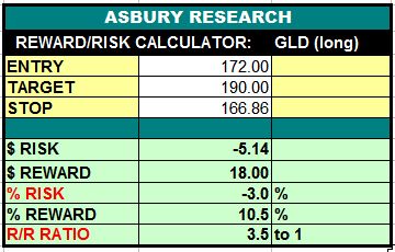 The SPDR Gold Shares (GLD) ETF is in the midst of an emerging major bullish trend change and a coincident emerging trend of Strategic (quarterly) relative outeprformancein versus the S&P 500. This recent strength is being fueled by a new trend of monthly asset expansion in the ETF. Together, these conditions establish a relative low-risk opportunity to buy GLD, and the physicalgold bullion it represents. A sustained rise above the 168.54 area in GLD would target an additional 11% rise to 190.00. This is an Asbury Value trade idea.