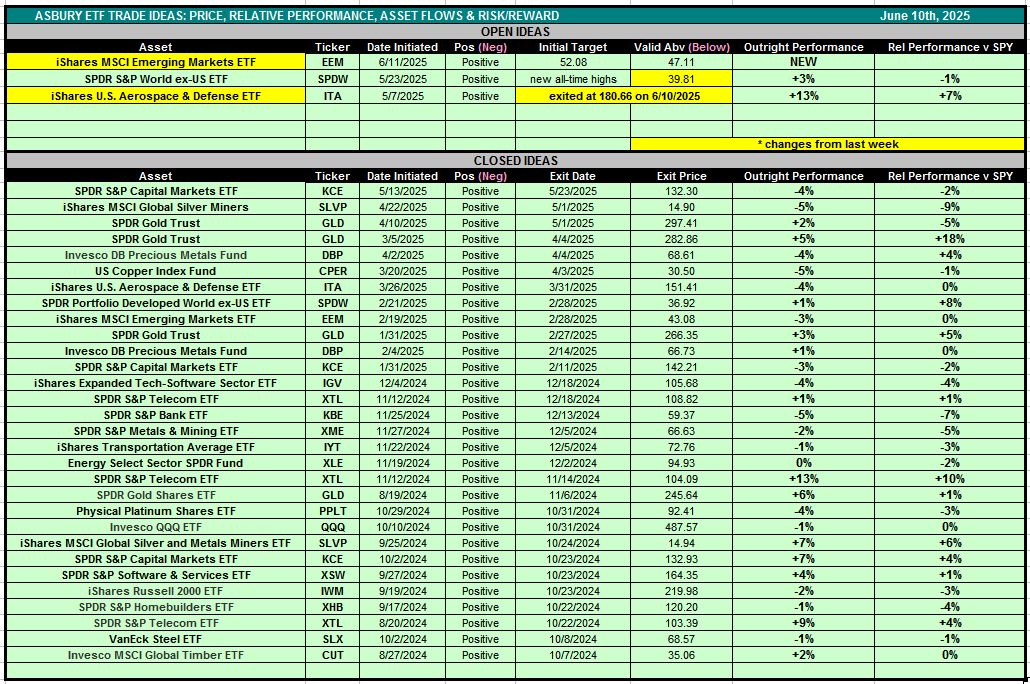 Table 1 below is also accessible via the Asbury ETF Trade Ideas rectangle at the top of the Research Center.