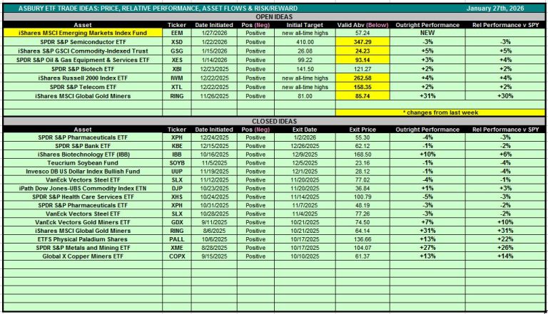 Table 1 below is also accessible via the Asbury ETF Trade Ideas rectangle at the top of the Research Center.