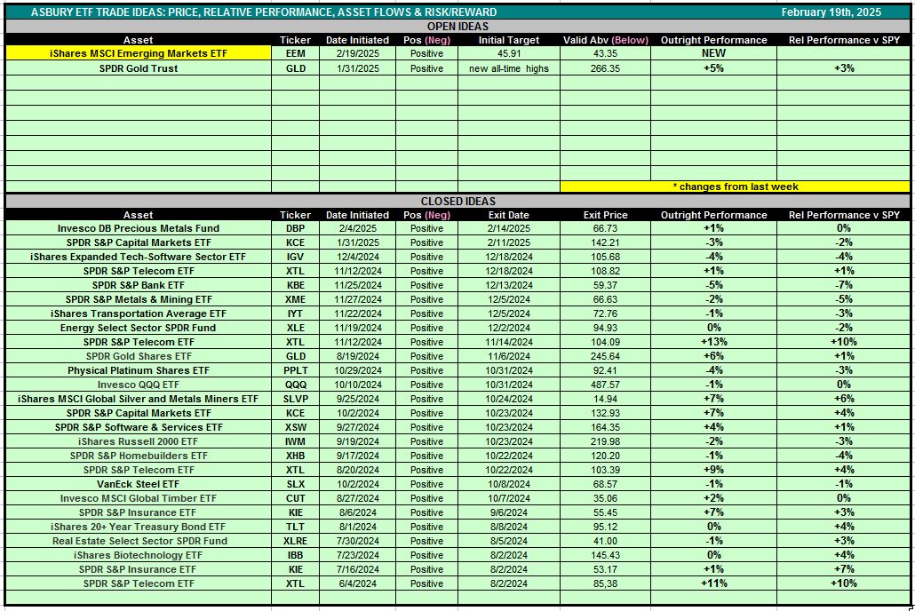 Table 1 below is also accessible via the Asbury ETF Trade Ideas rectangle at the top of the Research Center.
