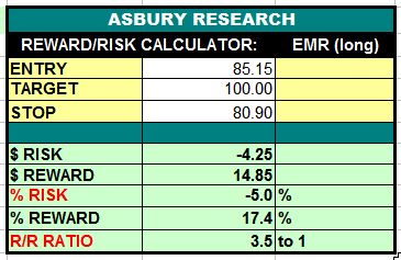 Emerson Electric Co. (EMR) appears to be resuming its August 2020 major uptrend amid quarterly relative performance versus the benchmark S&P 500 (SPX). A sustained rise above the $80.97 area would help confirm this and target an additional 17% rise to $100.00 per share. This is an Asbury Momentum trade idea.