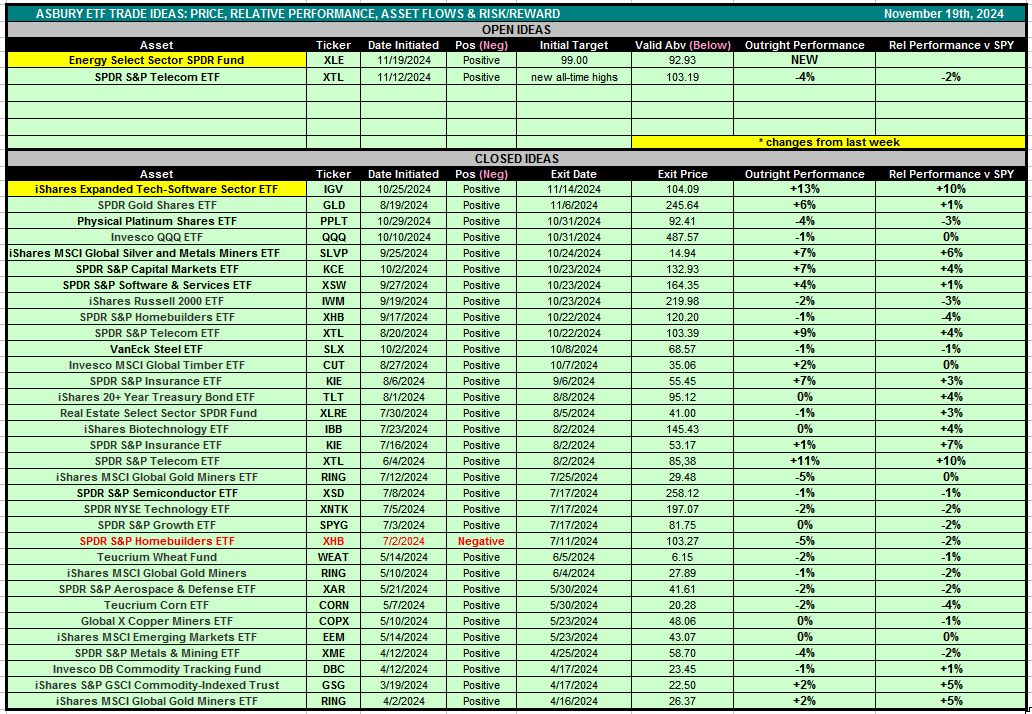 Table 1 below is also accessible via the Asbury ETF Trade Ideas rectangle at the top of the Research Center.