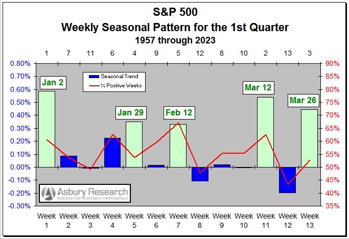 The chart below shows that the first week of January is the seasonally strongest of the entire 1st Quarter based on data since 1957.