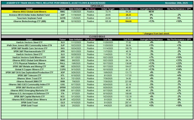 Table 1 below is also accessible via the Asbury ETF Trade Ideas rectangle at the top of the Research Center.