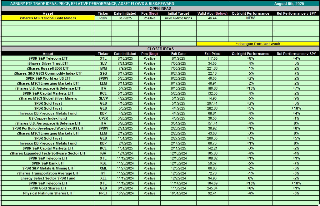Table 1 below is also accessible via the Asbury ETF Trade Ideas rectangle at the top of the Research Center.