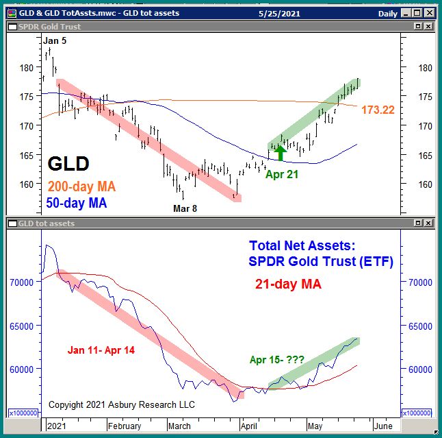 In our Apr 21st Special Report entitled Gold ETF (GLD) Bottoming? we pointed out that the SPDR Gold Shares (GLD) ETF had recently made a minor bullish trend change amid expanding investor asset flows and said this pointed toward significantly higher prices in the weeks and months ahead.