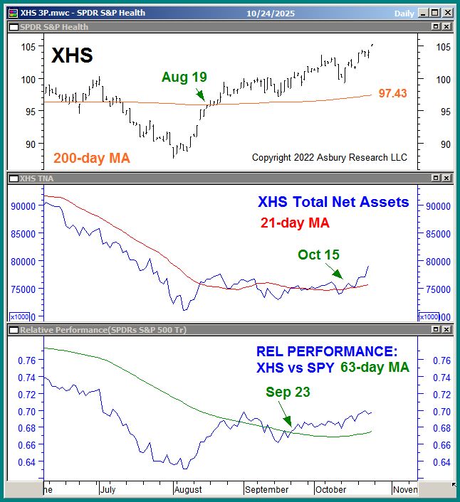 The SPDR S&P Health Care Services ETF (XHS) is making new 3 1/2 year highs amid monthly asset expansion and quarterly relative outperformance versus the S&P 500 (SPY). This suggests a potential new buy/overweight opportunity in XHS and health care services-related assets.
