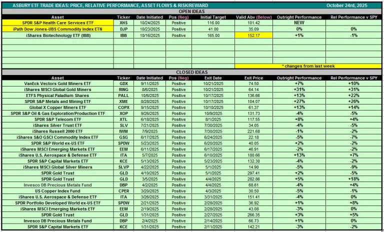 Table 1 below is also accessible via the Asbury ETF Trade Ideas rectangle at the top of the Research Center.