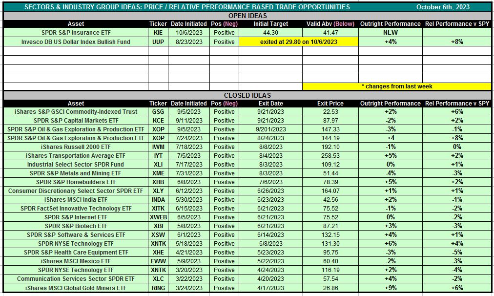 Table 1 below is also accessible via the Sector & Industry Group Ideas rectangle at the top of the Research Center.