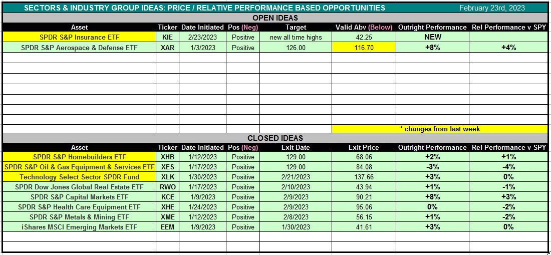This table is also accessible via the Sector & Industry Group Ideas rectangle at the top of the Research Center.