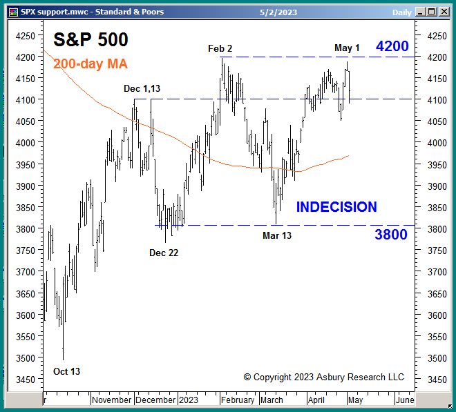 The reasons for indecision are all over the financial news. Some respected experts vehemently believe the Fed is done tightening, that economic conditions are pretty good overall, and are expecting decent 1st Quarter earnings. They believe this is a buying opportunity. Other experts believe more inflation and a recession are looming. They believe this is a time to protect capital. Meanwhile, there are serious concerns that a few recently failed banks are just the tip of the iceberg of an emerging systemic banking problem — and Congress is once again playing “chicken” with the debt ceiling and thus the credit risk of our Treasury securities. Investor anxiety creates indecision and tight trading ranges, and that compressed energy eventually becomes the launching pad for the next investable trend.
