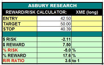 Table 1 below shows that considering the aforementioned upside target and a protective stop placed below the $40.39 area, a long entry price of $42.50 would provide a 1:3.6 risk/reward ratio (risking $1.00 to make $3.60) with an initial risk of 5.0%.