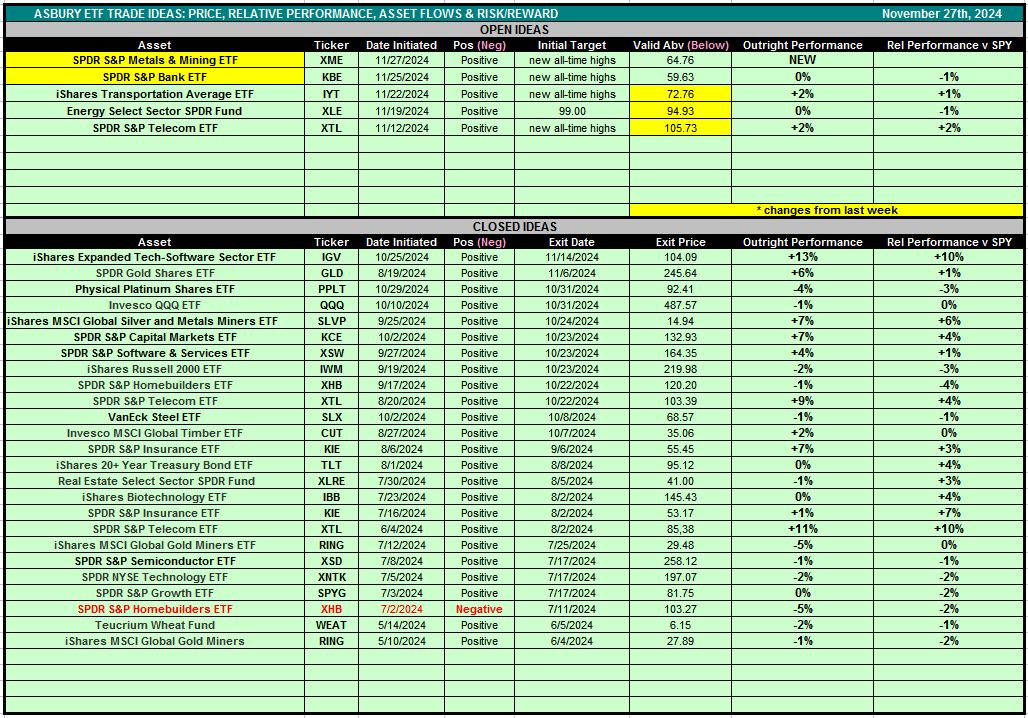 Table 1 below is also accessible via the Asbury ETF Trade Ideas rectangle at the top of the Research Center.