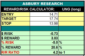 Table 1 below shows that considering the aforementioned upside target and a protective stop placed below the $13.98 area, a long entry price of $14.71 would provide a 1:4.2 risk/reward ratio (risking $1.00 to make $4.20) with an initial risk of 5.0%.