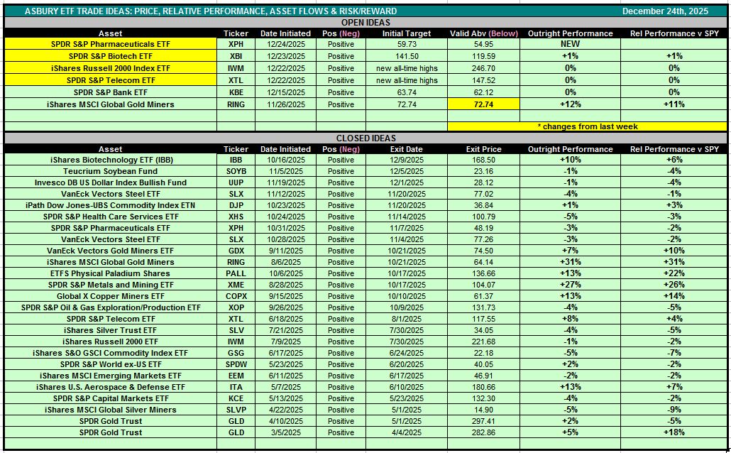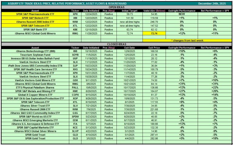 Table 1 below is also accessible via the Asbury ETF Trade Ideas rectangle at the top of the Research Center.