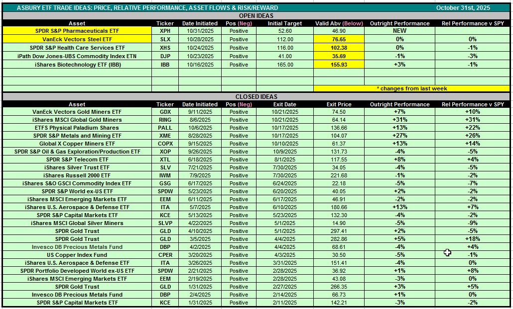 Table 1 below is also accessible via the Asbury ETF Trade Ideas rectangle at the top of the Research Center.