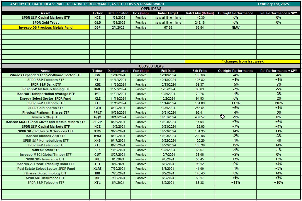 Table 1 below is also accessible via the Asbury ETF Trade Ideas rectangle at the top of the Research Center.