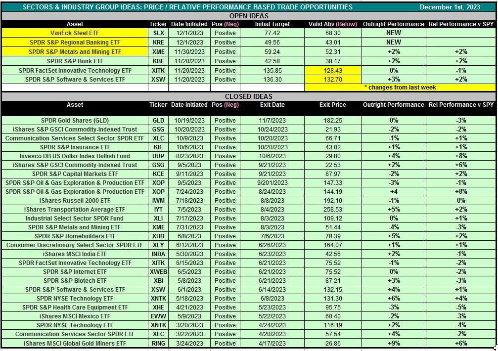Table 1 below is also accessible via the Sector & Industry Group Ideas rectangle at the top of the Research Center.