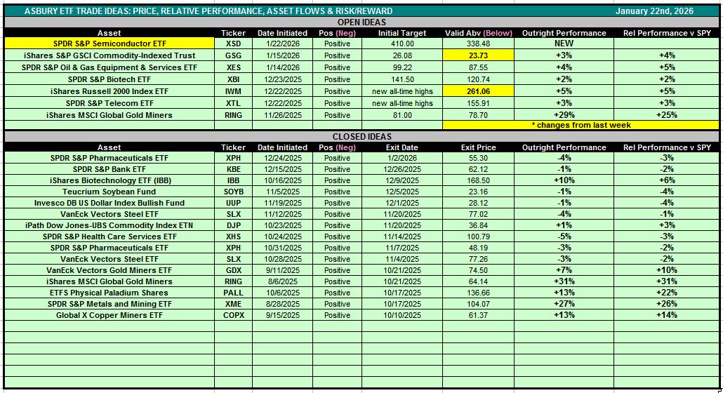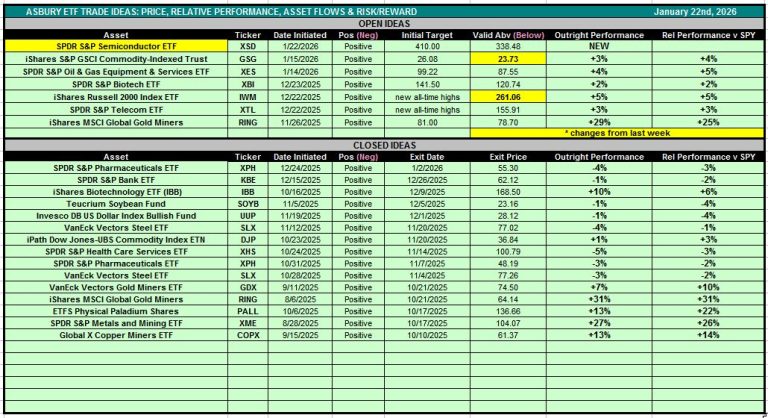 Table 1 below is also accessible via the Asbury ETF Trade Ideas rectangle at the top of the Research Center.