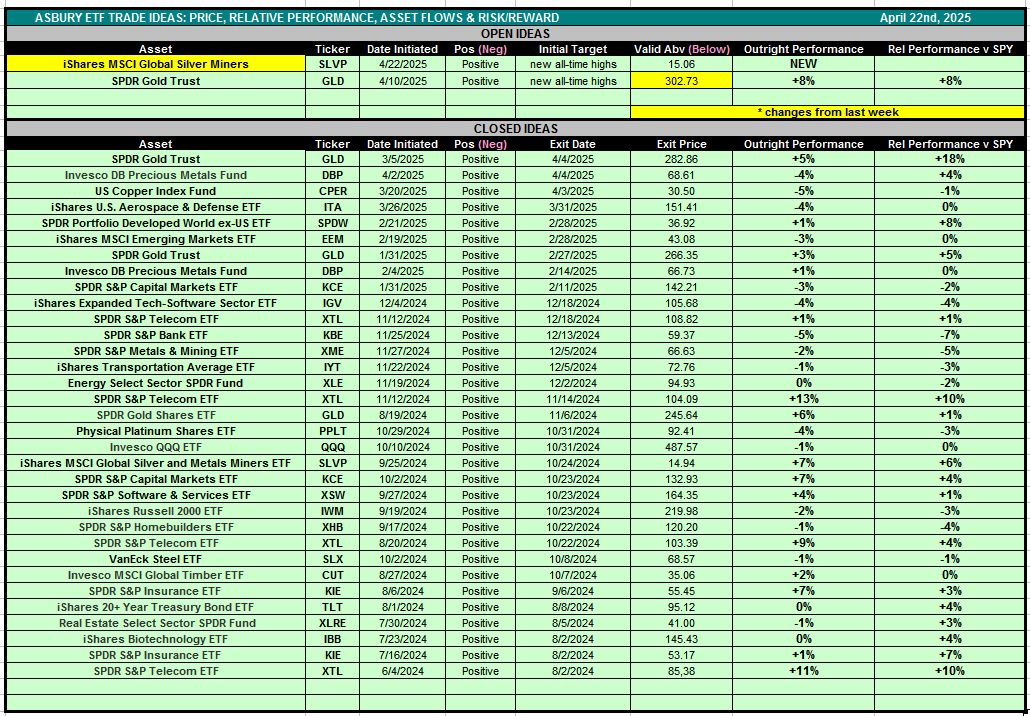 Table 1 below is also accessible via the Asbury ETF Trade Ideas rectangle at the top of the Research Center.