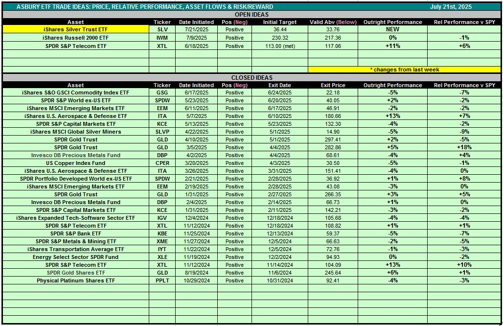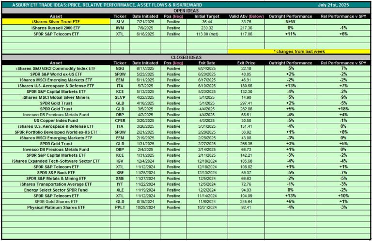 Table 1 below is also accessible via the Asbury ETF Trade Ideas rectangle at the top of the Research Center.