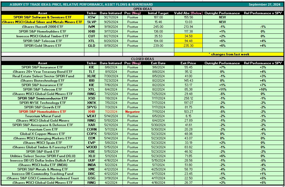 Table 1 below is also accessible via the Asbury ETF Trade Ideas rectangle at the top of the Research Center.