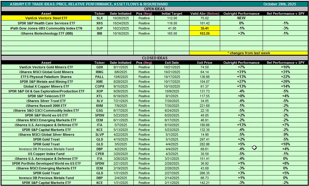 Table 1 below is also accessible via the Asbury ETF Trade Ideas rectangle at the top of the Research Center.