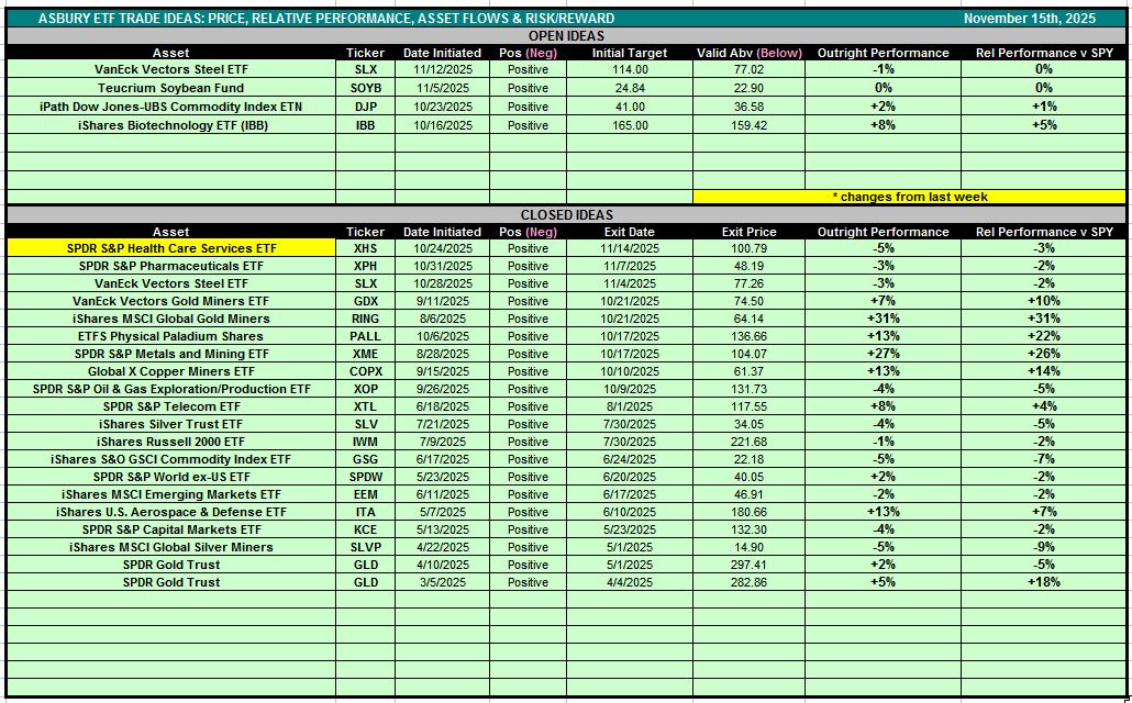 Table 1 below is also accessible via the Asbury ETF Trade Ideas rectangle at the top of the Research Center.