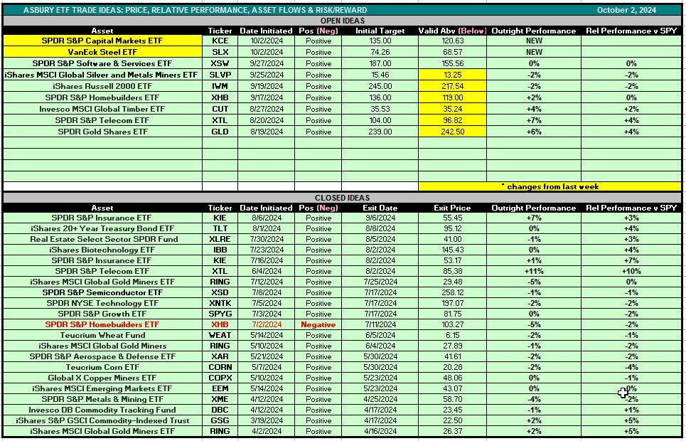 Table 1 below is also accessible via the Asbury ETF Trade Ideas rectangle at the top of the Research Center.