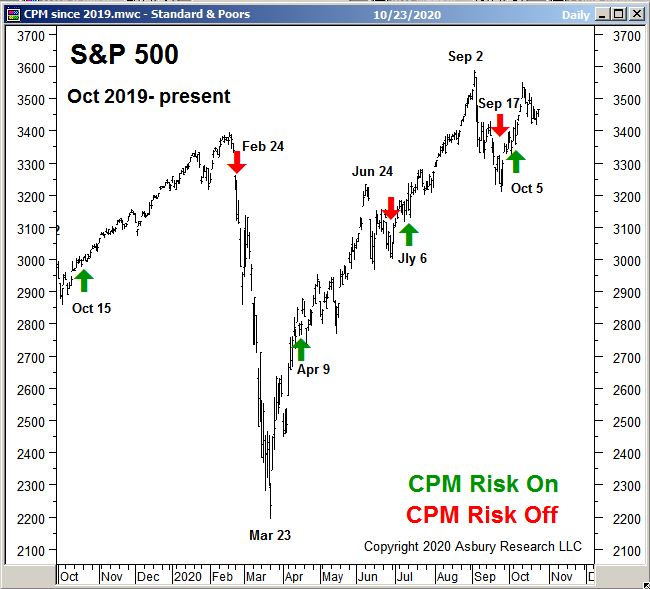 Editor’s Note: The Correction Protection Model (CPM) is our proprietary defensive model for the S&P 500. CPM’s primary objective is to protect investor assets during stock market corrections but to otherwise remain invested, taking advantage of equity prices’ historical propensity to move higher over time. CPM is objective, data driven, and independent of the day to day price fluctuations in the major US stock indexes. CPM is binary: it is either Risk On or Risk Off. This wealth preservation tool was initially developed following the 2008 Financial Crisis, to protect investors from another similar market collapse.