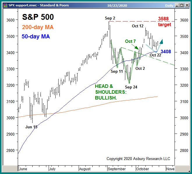 This week, as Ken Tomko of Asbury Investment Management (AIM) pointed out in this week’s video (below), our focus is on the benchmark S&P 500’s (SPX) upcoming reaction to 3408 support. Chart 2 below shows that SPX tested and held this level late last week.