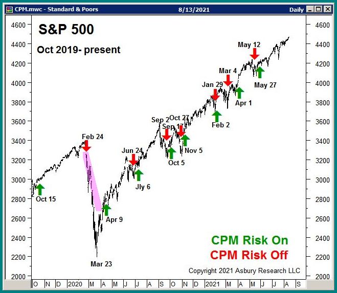 Unlike the Asbury 6, which is a dynamic, daily-updated measure of the stock market’s internal health, CPM is an actionable model that our clients use to avoid stock market corrections and the big portfolio drawdowns they cause. It is objective, data-driven, and independent of the day-to-day price fluctuations in the major US stock indexes.