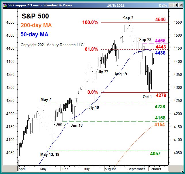 A significant and sustained rise above this area next week, confirmed by a shift back to Risk On / Positive by our Tactical models (Correction Protection Model, Asbury 6) would be necessary to indicate the current corrective decline is over and the larger 2021 advance has resumed.